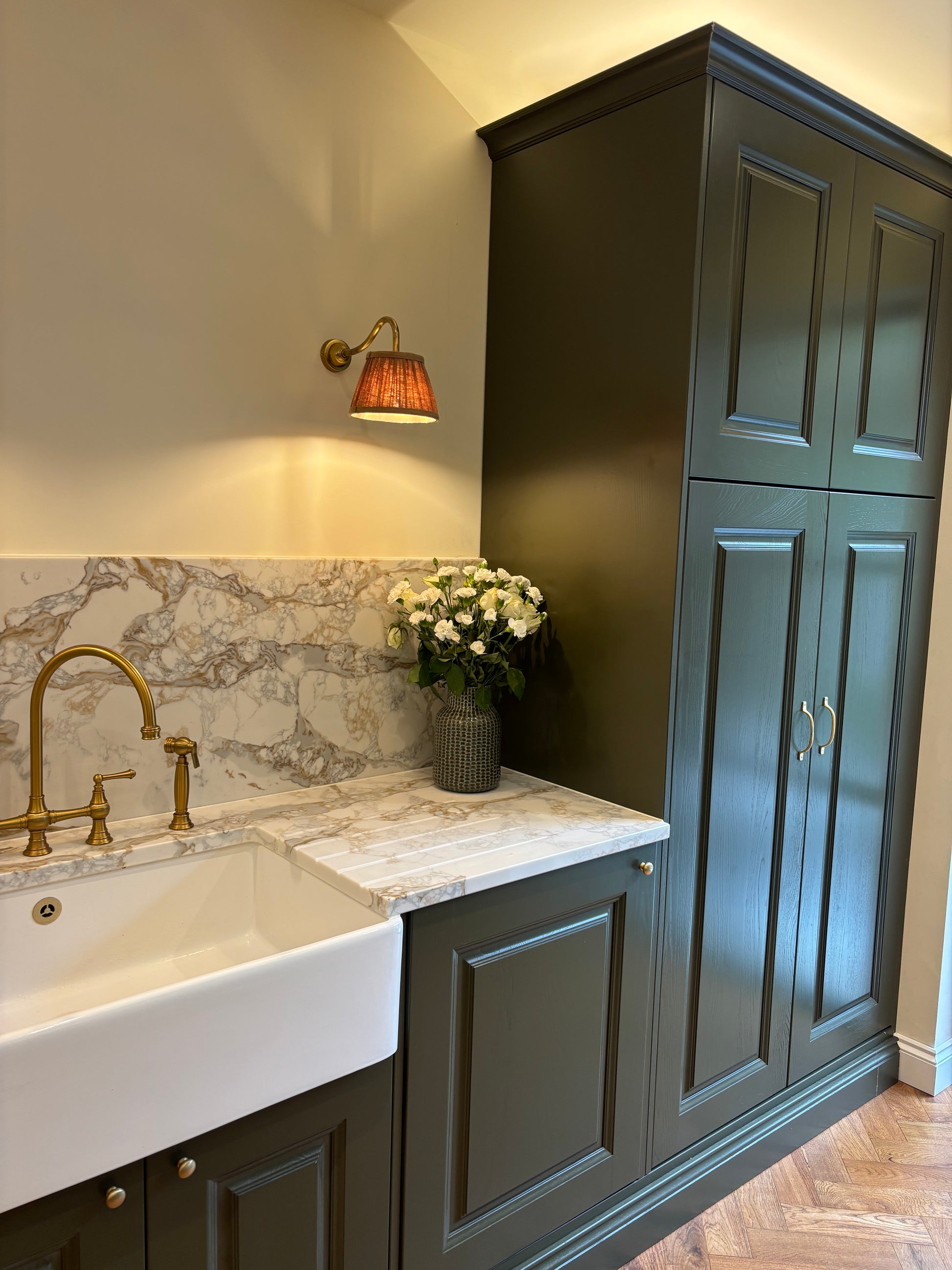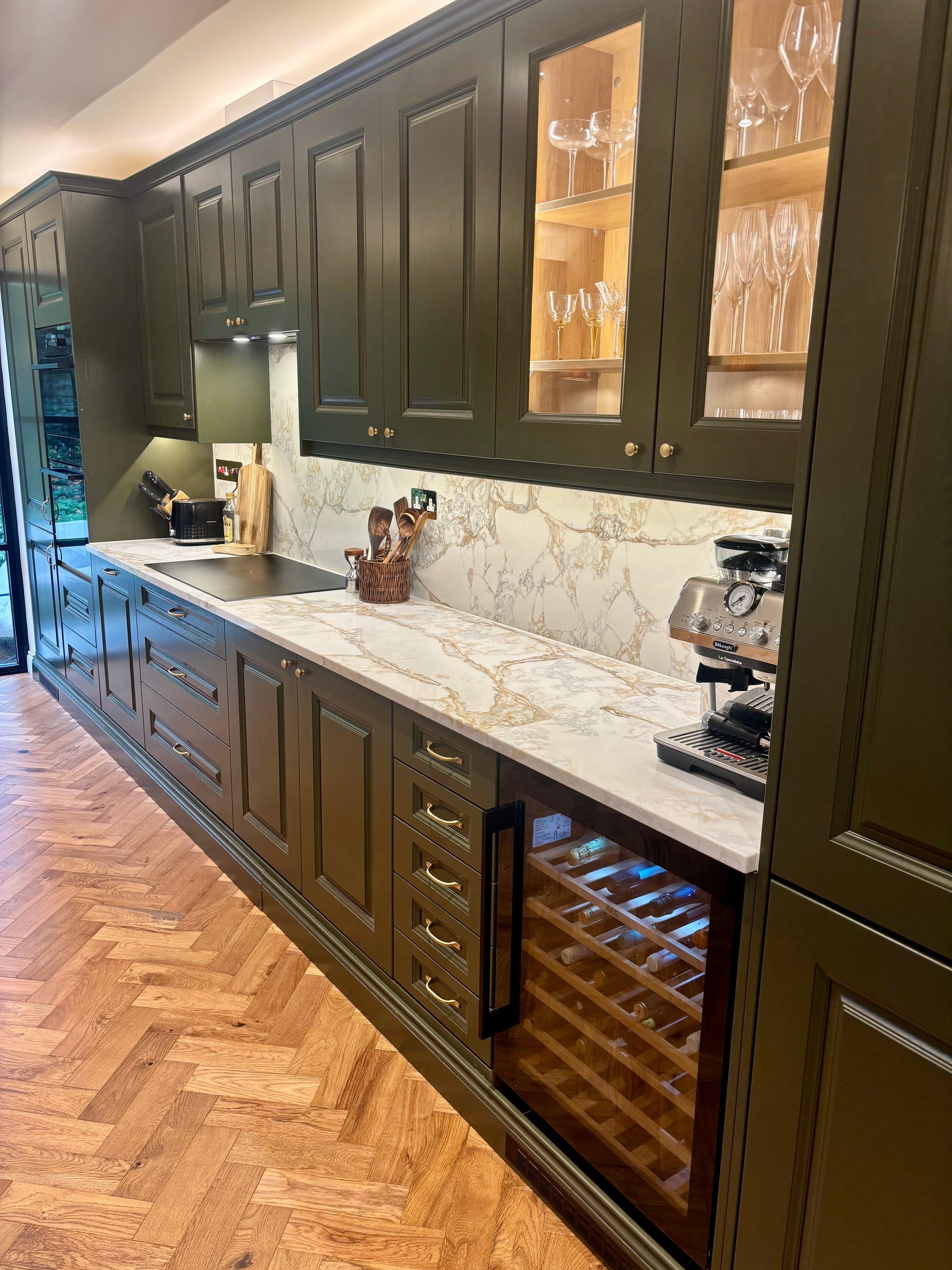 Fridge, oven, microwave-combi oven, induction hob, wine fridge, dishwasher